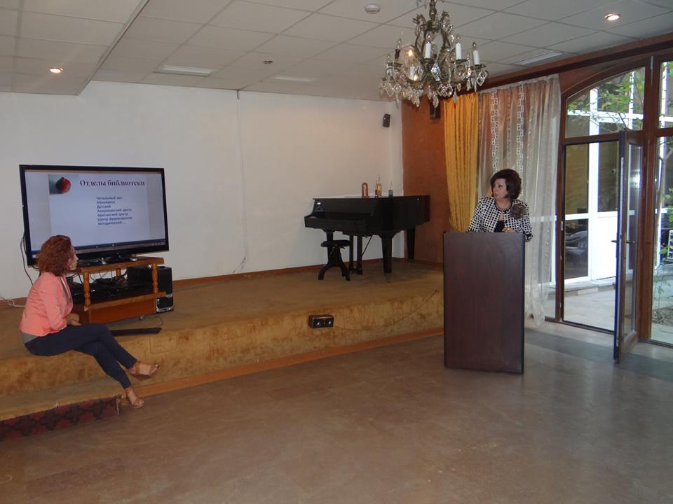 On September 20-23, 2014 in the framework of the program “To the Future Via Libraries”, the 14th Sochi’s international library conference’s outgoing session took place in Armenian National library. The discussion topic of this conference was “New libraries for the modern youth”. As a report entitled “The involvement of the young people into the reading culture is the primary problem of libraries” was sent to Sochi beforehand by YCCL’ s director Hasmik Karapetian, who had the right to take part in the conference as well. On September 22, YCCL hosted the director of Krasnodar Regional Youth Library Lyudmila Filipovna, the director of Kamchatka Regional Scientific Library Lena Abrahamian, the head of Kemerovo Municipality’s department of Culture and Youth Olga Karasieva, the director of Novgorod State Regional Children's Library Natalia Bochkaryeva, the director of The National Library of Adygeya Bela Kikoeva, the director of Gelendjik City Central library Svetlana Serdyukova and others. After a small tour in YCCL, the libraries director Hasmik Karapetian told the guests about the youth programs offered by the library.